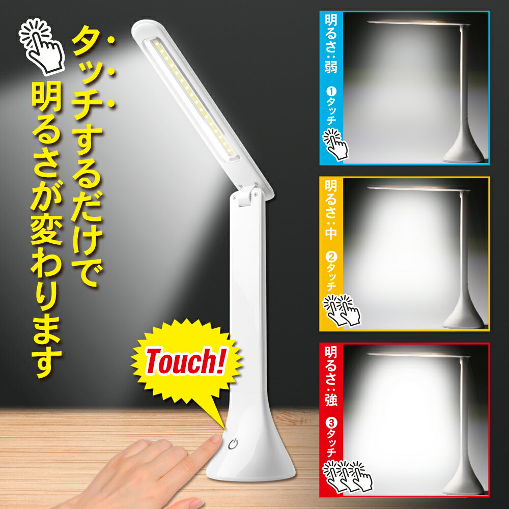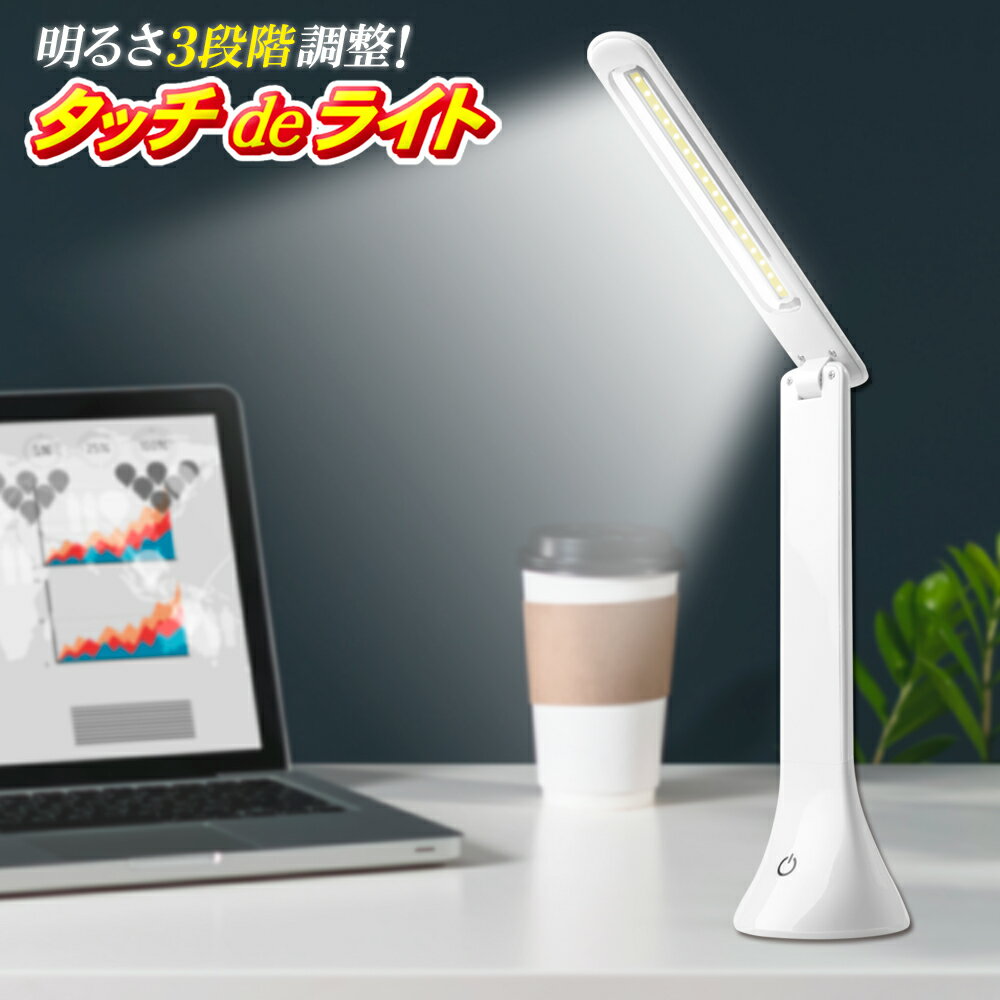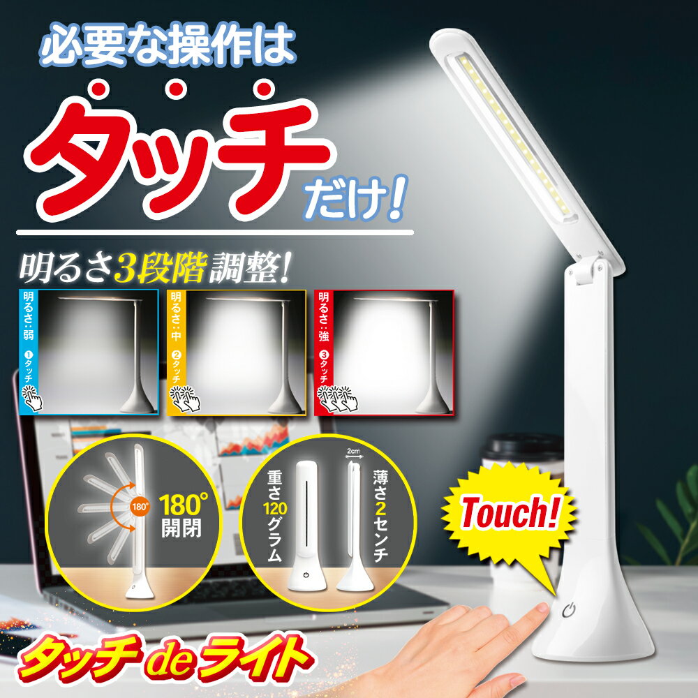 【全国送料無料 定形外郵便発送】COB式・3段階明るさ調節・180度折りたたみ式・極薄・超軽量・乾電池式・単3電池・持ち運び・スタンドライト・デスクライト・コンパクト・新生活・一人暮らし・勉強机・ベット・枕元【△】/タッチdeライト