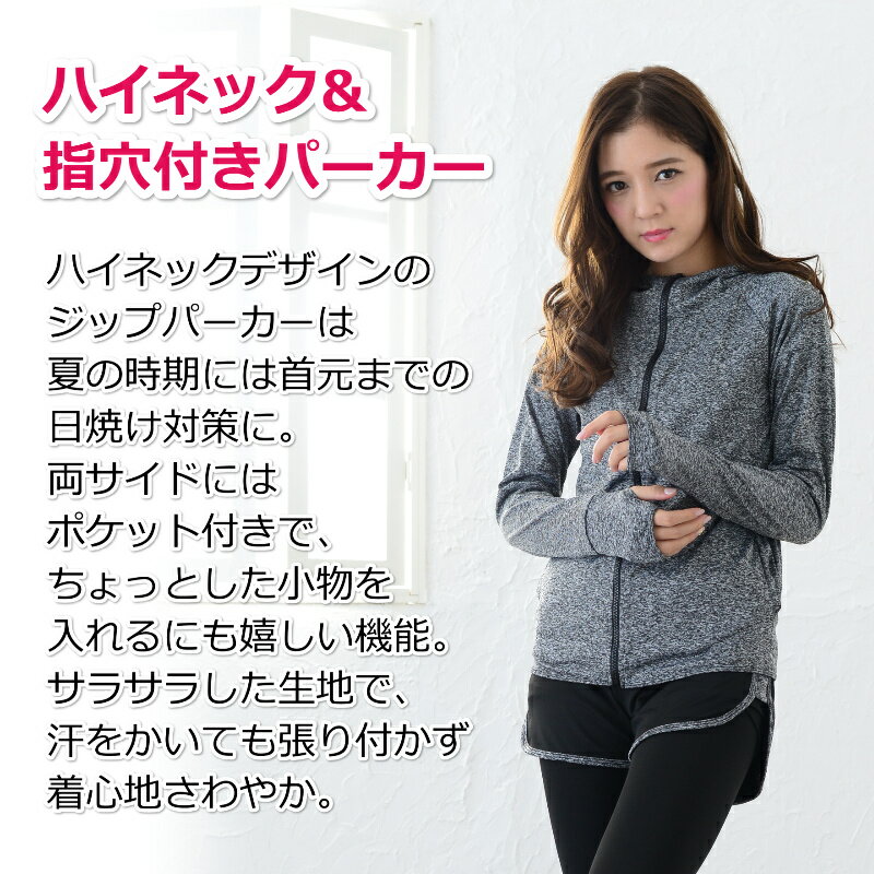 ✅【ハイネック&指穴付きパーカー】ハイネックデザインのジップアップパーカーは、日差しが強い時期には日焼け対策、肌寒い時期には寒さ対策にも◎両サイドにはポケット付きで、ちょっとした小物を入れるにも嬉しい機能。